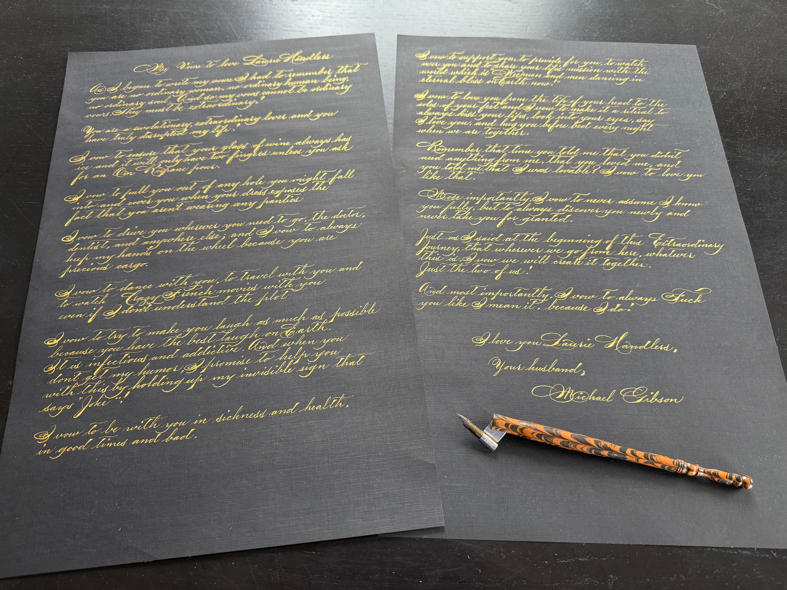I've been fascinated with antique script and penmanship since boyhood. I specialize in pointed pen calligraphy, both Spencerian script and Copperplate. I like to bring a bit of analog joy and playfulness to our digital madness. I have far too many pens.